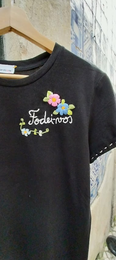 Home T-Shirts Bordadas à mão Fodei-vos Fodei-vos Tipo Mulher Homem Tamanho S M L XL COR BRANCO PRETO 40,00 € Desconto de %. Comprar Contactar T shirt de algodão bordada à mão . Podes escever nas observaçoes da encomenda a personalização que desejas .) Partilhar