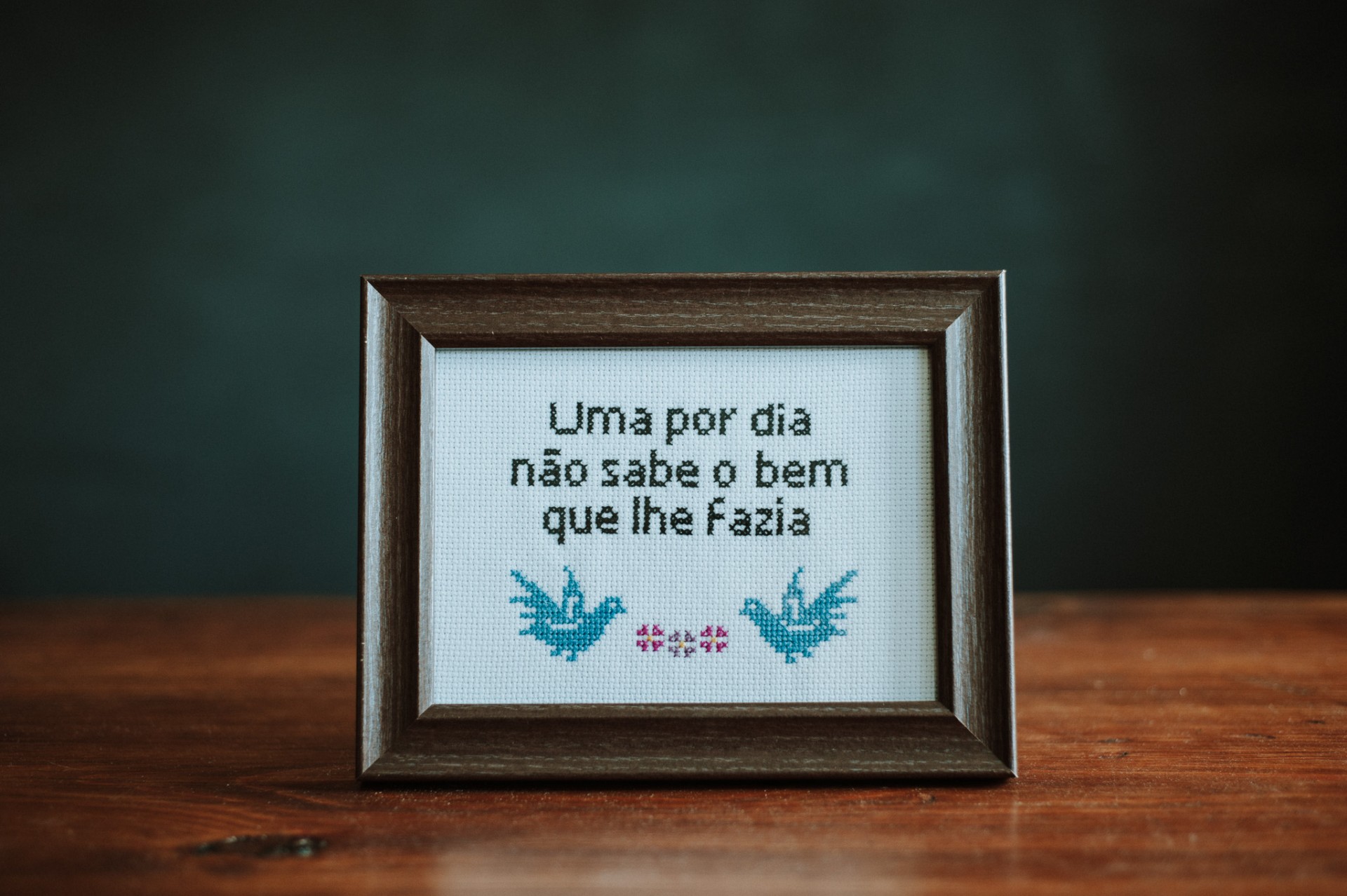 Home PONTO CRUZ em Molduras Tela Bordada UMA POR DIA NÃO SABE O BEM QUE LHE FAZIA small Tela Bordada UMA POR DIA NÃO SABE O BEM QUE LHE FAZIA small PRENDA PARA O NATAL ! Escolha uma opção SIM NÀO 38,00 € Desconto de %. O produto estará disponível para compra brevemente. Tela bordada UMA POR DIA NÂO SABE O BEM QUE LHE FAZIA em tamanho pequeno Tela 13x18 Partilhar